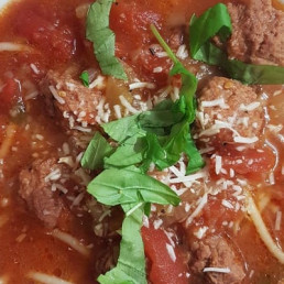 Made with zucchini, eggplant, sweet bell peppers, onions, tomatoes, stewed in a tomato sauce. Topped with 5oz Montreal Smoked Meat, on French white bread. Must try!